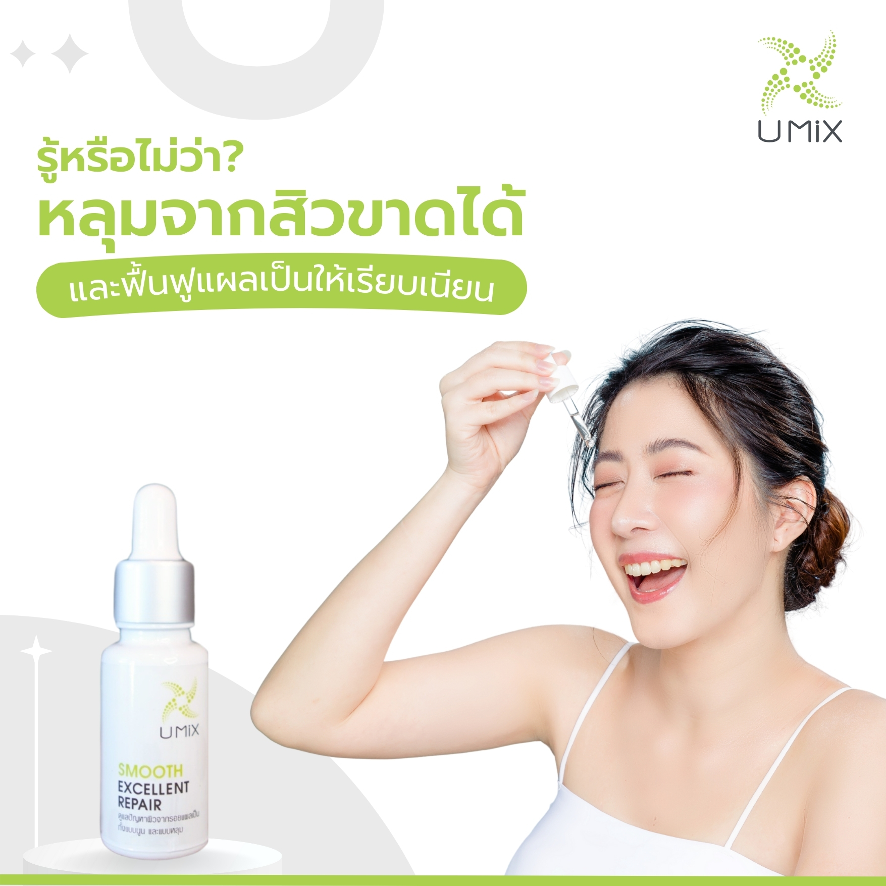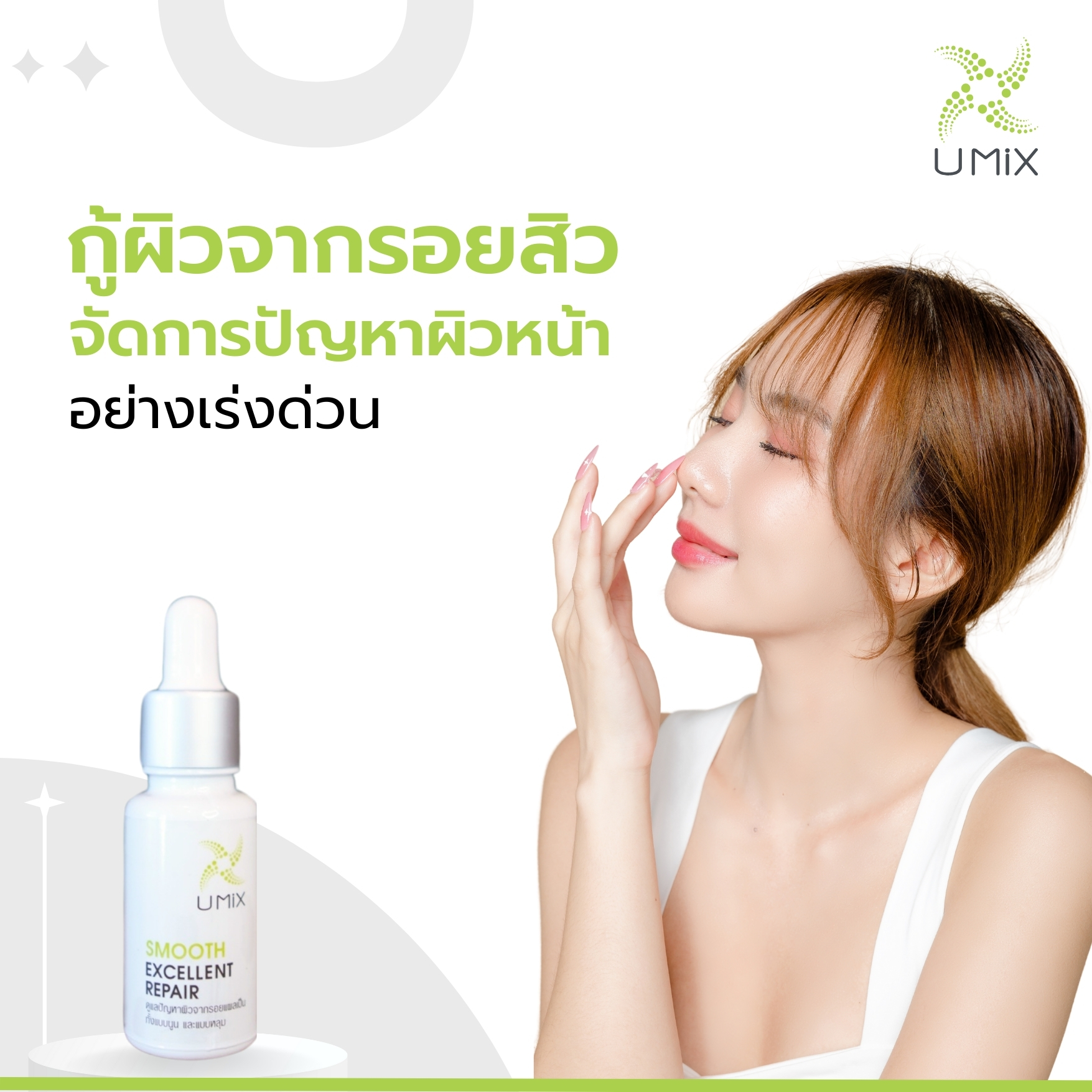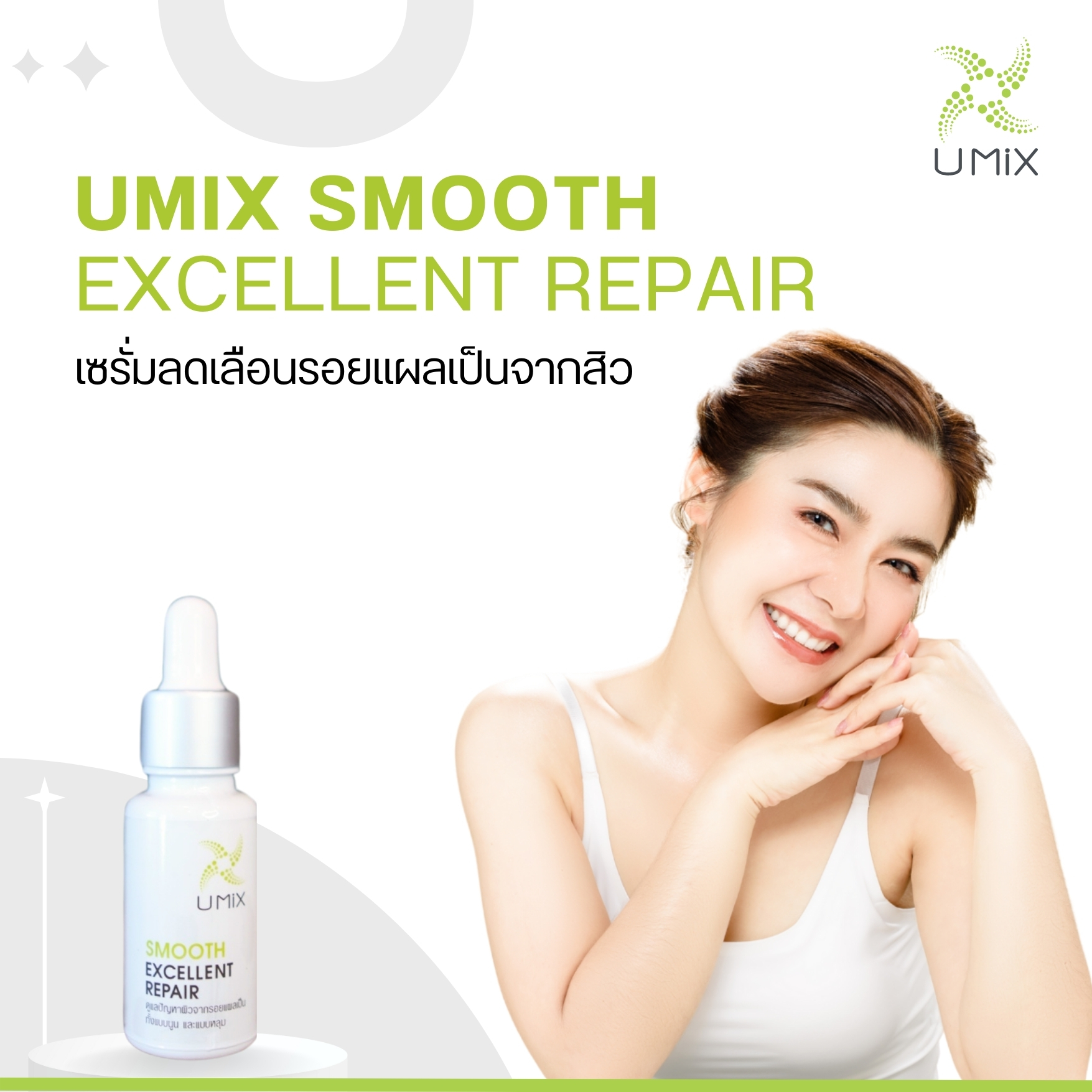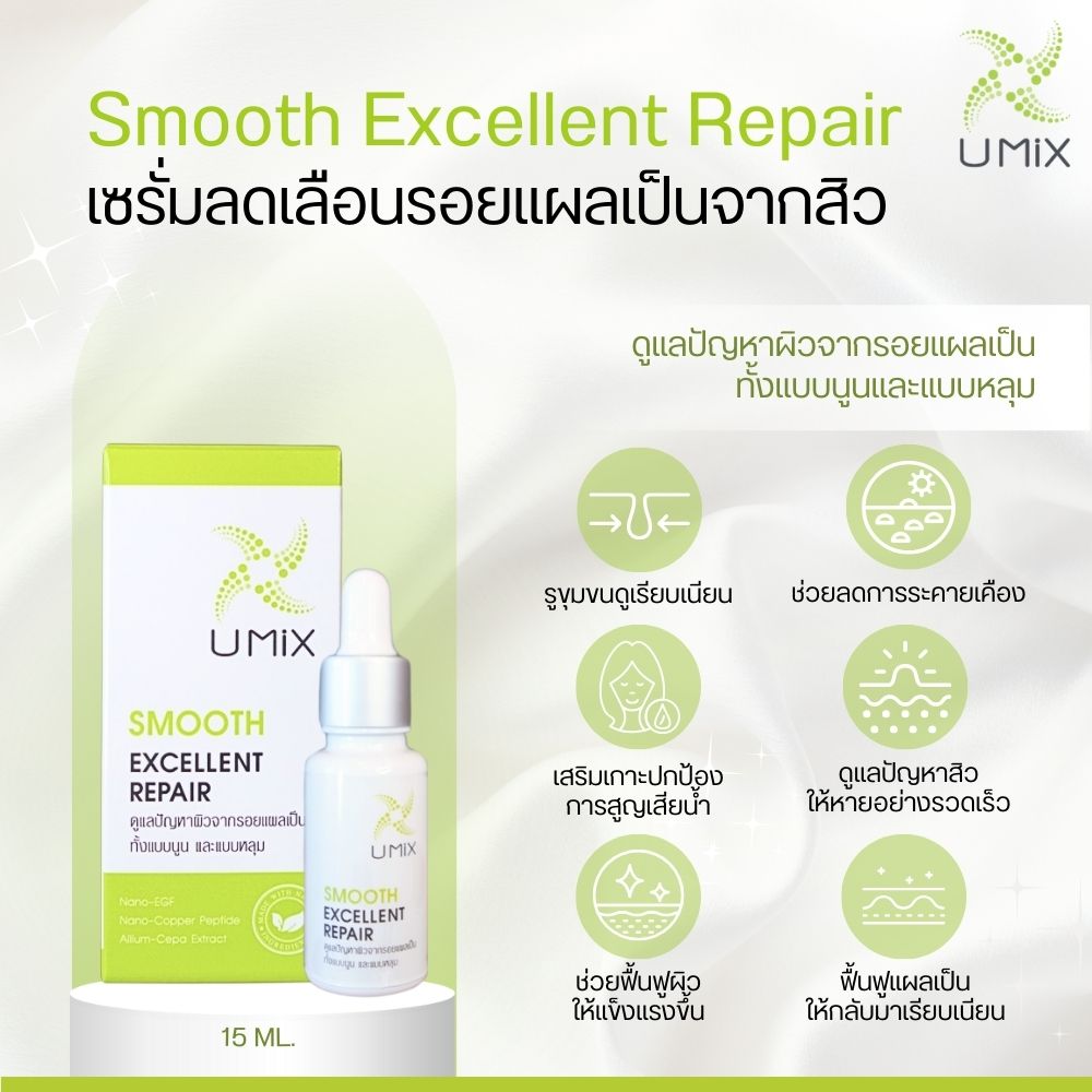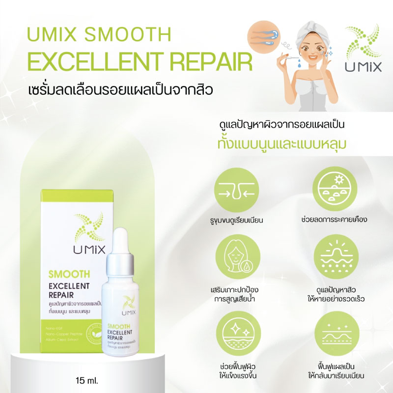 เซรั่มเนื้อบางเบาช่วยฟื้นบำรุงความชุ่มชื้นให้กับผิวเสริมเกราะปกป้องการสูญเสียน้ำ ฟื้นฟูสภาพผิวจากรอยแผลเป็นทั้งแบบหลุม และแบบนูน ด้วยอีจีเอฟโอลิโกเปปไทด์ (Epidermal Growth Factor) และคอปเปอร์เปปไทด์ (Copper Peptide) สารทรงอนุภาพที่เป็นที่รู้จักกันอย่างแพร่หลายในวงการแพทย์ผิวหนังและสกินแคร์ และได้รับรางวัลนวัตกรรมดีเด่นระดับโลก ผสานกับสารสกัดจากหอมอุดมด้วย สารพฤษเคมีที่ช่วยฟื้นฟูแผลเป็นให้ผิวหน้ากลับมาเนียนเรียบขึ้นอีกครั้ง