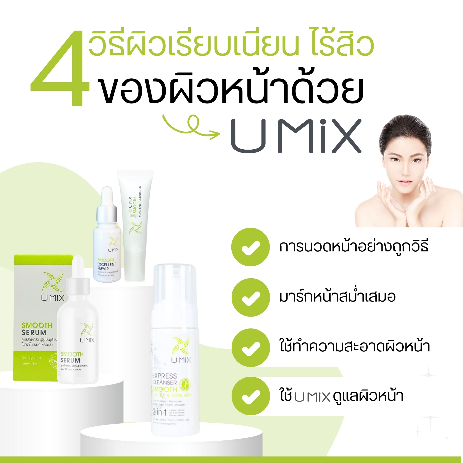หยดเซรั่มปริมาณพอเหมาะลงบนปลายนิ้ว แต้มลง 5 จุด ทั้งบริเวณหน้าผาก แก้ม 2 ข้าง และคาง เกลี่ยให้กระจายทั่วผิวหน้า ไม่เว้นแม้รอบดวงตา  นวดเบาๆ ให้ซึมซาบลงสู่ผิว แนะนำให้ใช้ทั้งเวลาเช้าและก่อนนอน